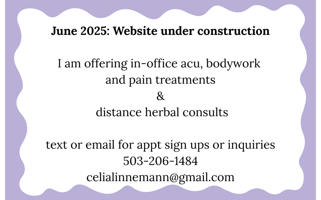 I offer in-person Acu and herb visits for those in the Portland, Oregon area.